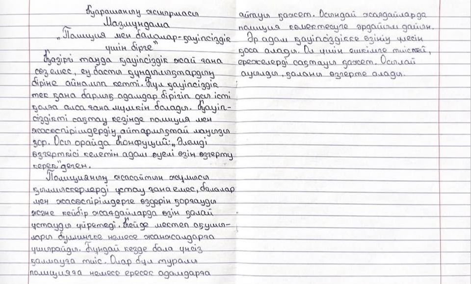 «Заң және Тәртіп» идеологемасын ілгерілету мақсатында мектепте бірыңғай мазмұндама жазу іс-шарасы өтті.