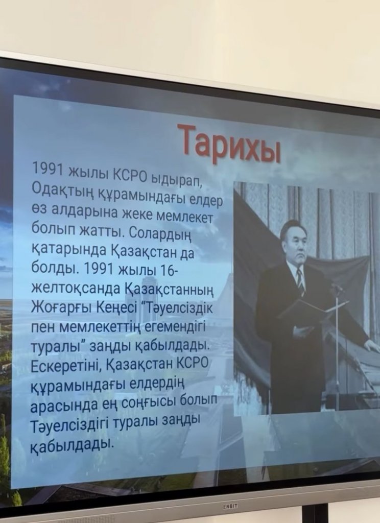Тәрбие сағаты барысында тәуелсіздік құрбандары туралы мәліметтер беріліп, олардың ел болашағы үшін жасаған ерлігі туралы айтылды. Оқушылармен сұрақ-жауап ұйымдастырылып, тақырып бойынша білімдері пысықталды. Сонымен қатар, Тәуелсіздікке арналған бейнеролик көрсетіліп, оқушылардың патриоттық сезімін арттыруға ықпал етті.