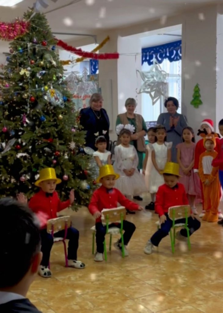 Мереке соңында балаларға тәтті сыйлықтар таратылып, барлығы көтеріңкі көңіл күймен тарқасты. Бұл Жаңа жылдық мереке балалардың жүрегінде жарқын естелік болып қалды.